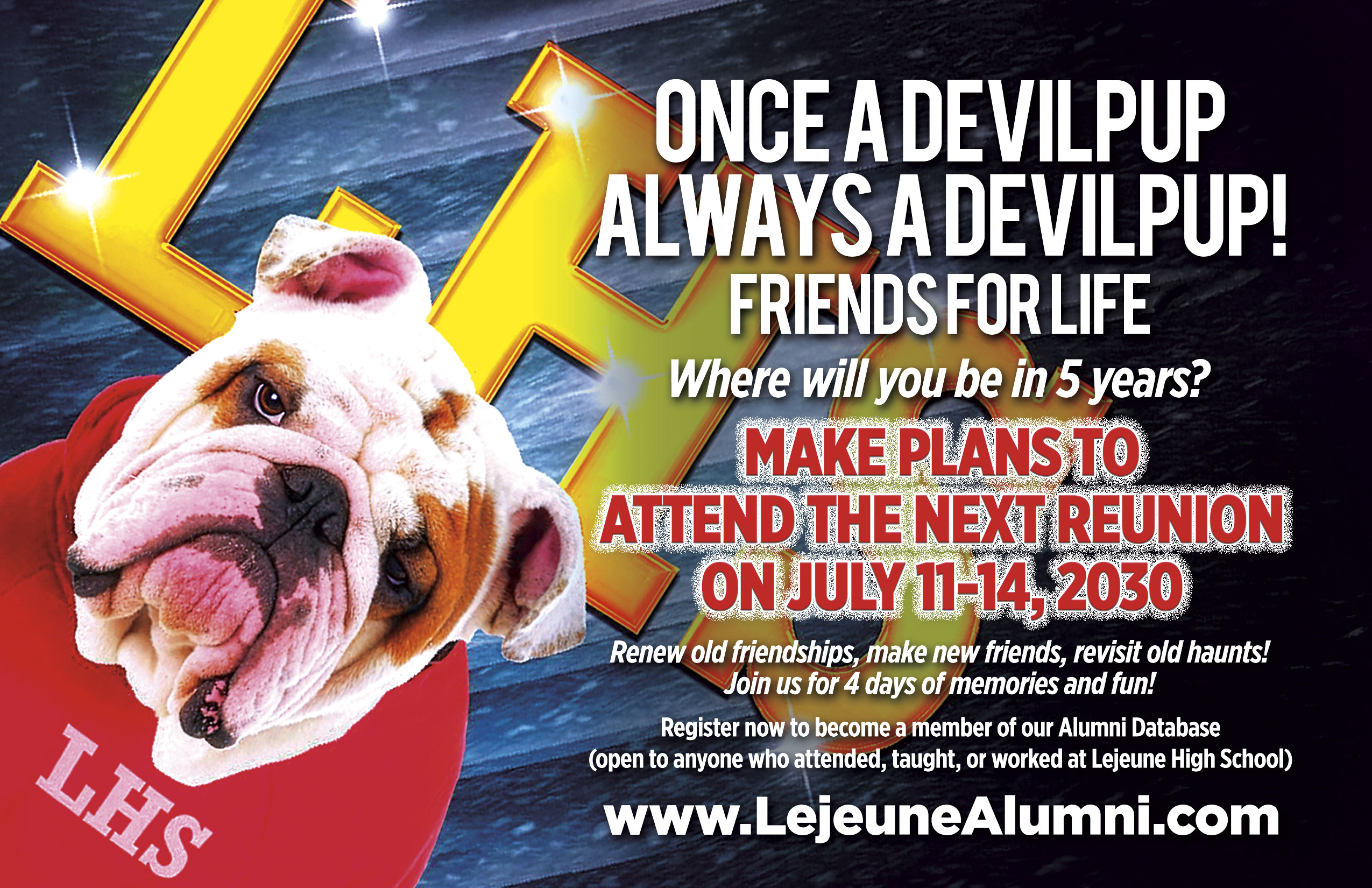 Though many alumni have lived in many parts of the world, several of them claim Camp Lejeune as their “homebase.” That is why our All-Class Reunions are so successful. Our motto is, “Semper Fi Devilpups. Friends for Life.”
